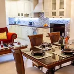 Boutique Villa Aspasia includes an equipped kitchenette, as well as a dining area for self-catering. The kitchen also offers tea and coffee making facilities, a stove top, and kitchenware.